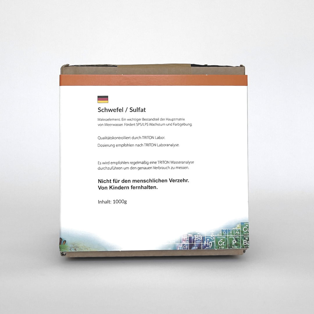 Sulphate macro element seawater supplement. Sulphate is an important element that naturally occurs in seawater. Beneficial for SPS/LPS coral colour and health. Caution: to be used by advanced aquarists only.